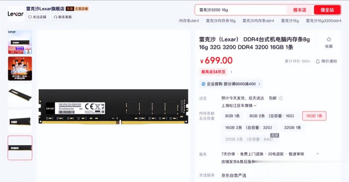 而在电商平台上,旧年售价仅179元的同款雷克沙DDR4 16GB内存条,其官方旗舰店售价已飙至699元,一年多时辰涨幅超三倍。