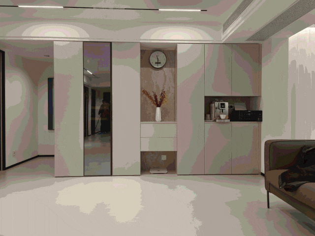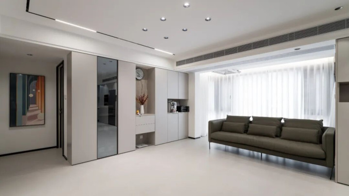 客厅中间要尽量浩荡——沙发尽量不要L型的,断念辛劳的大型茶几,遴选无茶几或轻巧边几的想象,为家东说念主与孩子的行径提供浩荡怡悦的行径区。