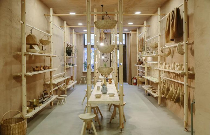 店里装修用的都是夯土、原木这些自然材料,想营造一种高档感。